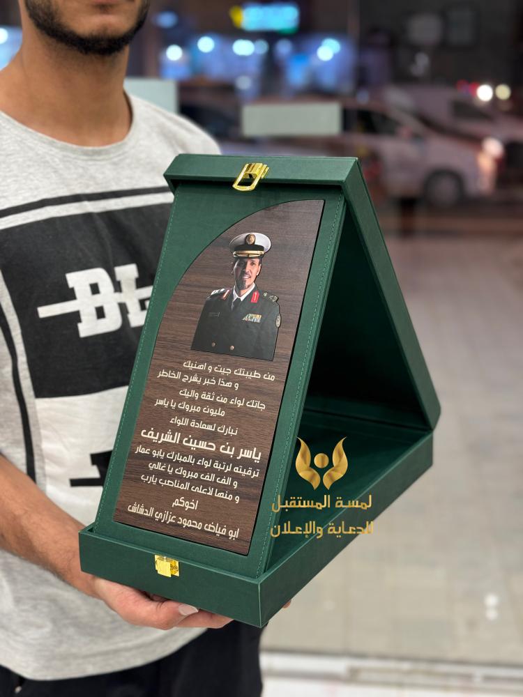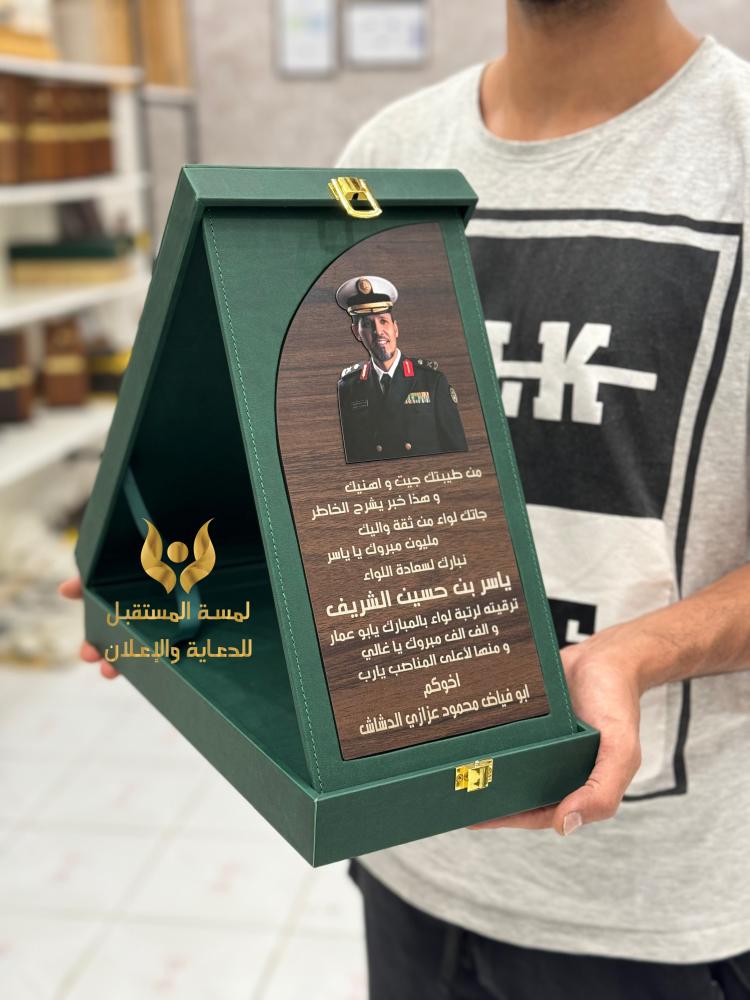 درع ترقية تصميم مميز مصنوع من الخشب الطبيعي و الجلد الإيطالي عالي الجودة