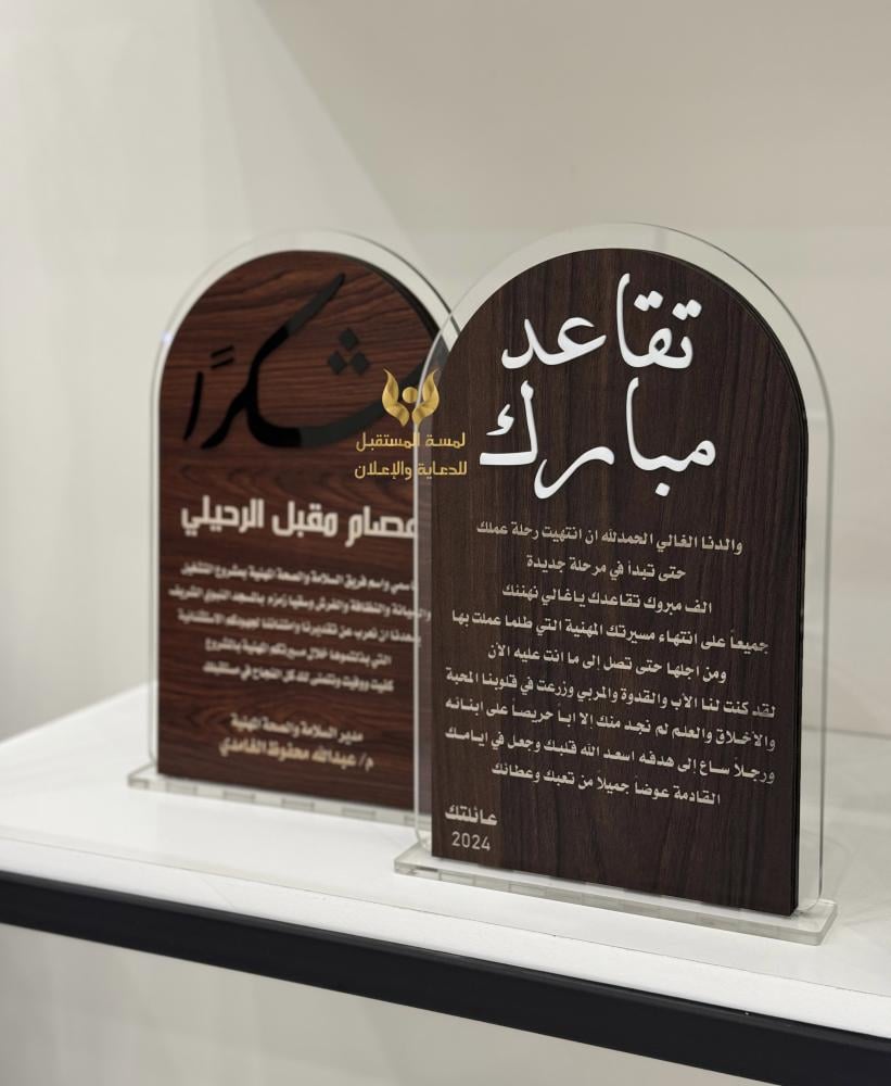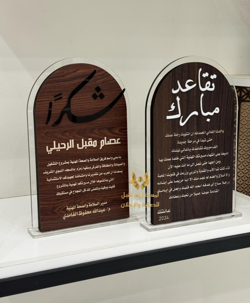 درع تكريم تصميم مميز مصنوع من الخشب و الأكريلك عالي الجودة